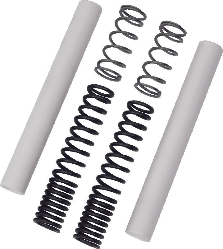 Burly Fork Spring Lowering Kits reduce front end dive during braking and improve overall ride performance. Your springs will be soft enough to soak up the small road bumps but firm enough to absorb the big ones. Kit includes components to lower bike 1 in. or 2 in. Includes (2) Fork springs, (2) Fork helper springs, (1) Cotter pin, (2) Fork spring spacers, and instructions.