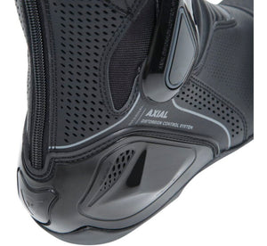 The Dainese Nexus 2 Air sport motorcycle boots with certified protectors are made of microfiber and D-Stone, with a perforated upper section to allow for air flow and optimal ventilation in case of warmer temperatures. Equipped with a nylon insert at the heel, replaceable thermoplastic sliders and the Axial Distortion Control ankle joint bending System guarantee high levels of protection, maximum comfort, and lightness.
