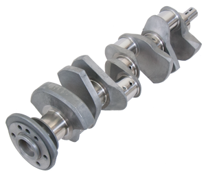 Eagle forged 4340 steel Cranks feature a non-twist forging, .125" fillet radiuses for superior strength so chamfered / narrowed bearings required, nitrided surface and micropolished. No lightening holes in secord or third rod throws. Intended for IMCA RaceSaver racing.