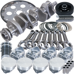 BALANCED 4.250" Cast Crank, 6.385" I-BEAM Rods,7/16" ARP 8740 BOLTS, HYPEREUTECTIC KB -3CC FLAT TOP 4.250" PISTONS, PLASMA-MOLY FILE-FIT RINGS,KING SI Rod/MAIN BEARINGS.