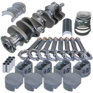 4.250" Cast Crank, 6.800" I-BEAM Rods,7/16" ARP 8740 BOLTS, Forged 4032 MAHLE -6CC FLAT TOP 4.185" PISTONS,PLASMA-MOLY FILE FIT RINGS,KING SI Rod/MAIN BEARINGS.