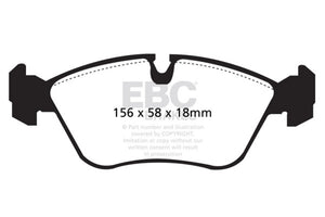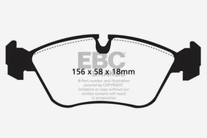 EBC Yellowstuff is an aramid fibre based brake compound with high brake effect form cold and is possibly one of the first ever compounds that can be used for STREET AND TRACK DRIVING. These pads do not require warm up but do get even stronger under the heat of hard driving. These are not a low dust pad and if your desire is for a low dust premium street use pad, you should consider EBC Redstuff.When considering full race use, Yellowstuff has been a strong favourite, having been used for two years in the Swedish Camaro Cup and at numerous other race events where a stock caliper system is fitted.It is also the choice of 90-percent of the Mazda MX5 Miata competitors in the UK race series and has an unblemished record as rotor friendly track pad for vehicles up to 2000 lbs weight or 200 BHP.In the USA the SCCA and NASA drivershave been testing Yellowstuff with feedback and good reports POURING in from a 543 test driver major market proving event with these groups. Read that figure again 543 test drivers.There is no guesswork here.