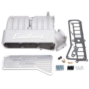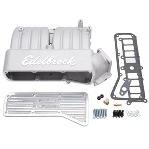Edelbrock part #3882 Performer RPM 5.8L Upper Plenum Only (includes plenum cover) is designed for 1988-96 Ford 5.8L, EFI, truck engines. The modular design of this intake manifold incorporates the latest air flow technology for maximum torque gains in the mid-range. This Upper Plenum offers a removable plenum cover that allows access to runners. The upper is powder-coated light titanium gray. Use with stock or stock replacement twin throttle body. Will not fit vans or stock manifold base.