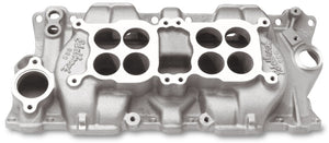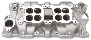 Edelbrock part #5425 C-26 Dual-Quad intake manifold is for 1955-86 262-400 c.i.d. S/B Chevys. This dual-quad has a low profile for hood clearance on most vehicles. Air-conditioning bosses and front oil filler tube boss included. Stock alternator brackets do not fit Carb center to carb center: 6-7/16". Accepts oil fill tube and breather #4803. Use with Performer-Plus cam #2103 for low-end torque or Torker-Plus cam/kit #5002 for top-end power. Warranty Installation Instructions Installation Instructions
