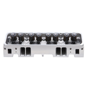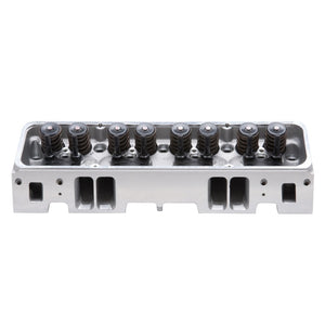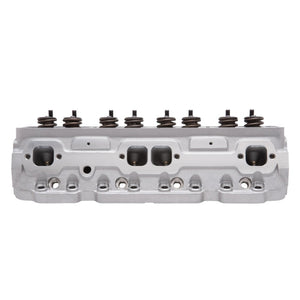 The Edelbrock #60985 E-Tec cylinder head is replacements for 302, 327, 350 & 400 c.i.d. S/B Chevy engines with "Vortec-style" manifolds. They feature an LT1-style raised runner intake port design for increased air-flow and ultimate performance. A unique combustion chamber design positions the spark plug closer to the center of the cylinder, promoting a more efficient combustion resulting in more power. This head includes an adjustable rocker stud and guide plate set-up for use with adjustable rockers or washers to properly position the stud height to accommodate factory style self-aligning rocker arms. They have 20% more exhaust flow than a cast iron Vortec head, great performance up to 6000 rpm and can produce 9.5:1 compression with stock pistons in 350 cubic-inch engines. RPM E-Tec cylinder head is dual-drilled and will accept 1987-95 center bolt and/or 1986 & prior perimeter flange mount valve covers and most stock exhaust manifolds.