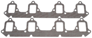 Edelbrock part #7229 Exhaust Gaskets are designed for 1958-76 Ford 390-428 FE V8 engines. These Exhaust Gaskets are made of EnCore HTX-900; a high-density non-asbestos fiber/metal core composite material consisting of two graphite coated, heat resistant fiber blended sheets that are mechanically and chemically fused to an expanded steel core. The finished product provides high heat resistance, excellent load retention and unmatched sealing performance on exhaust manifold and header applications. A 50% recovery rate allows for gasket expansion in the event your header loses the proper header bolt torque. Gasket futures a 1.40"x 2.04" port size.