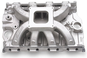 Edelbrock part #2936 Victor FE intake manifold is designed for high performance 390-406-410-427-428 c.i.d. Ford FE engines. This single-plane design provides race-winning power for many types of competition. Carb flange height is equal to the Ford high-riser manifold #C4AE-9424-G to fit under 427 Cobra hoods. Runners have plenty of material for port matching to low- or medium-riser style heads. Machined rear breather flange is included with unmachined nitrous bosses and front oil fill tube boss. Will not fit 427 high-riser and tunnel-port heads. Match with our FE heads.