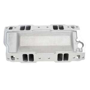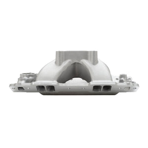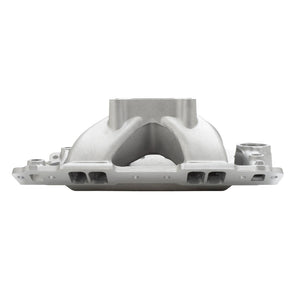 Edelbrock part #2892 Super Victor II intake manifold is designed to work with modern high flowing 23-degree heads on large cubic inch applications. The runner area at the plenum is 25% larger than our Super Victor #2925, and the port exits are machine-matched for use with a Fel-Pro #1206 intake gasket. Out-of-the-box modern casting techniques create smooth, thin and extended divider walls for "out-of-the-box" performance. This intake is machined for 4150 style carburetors. Can be port matched up to #1207 (1.38" x 2.28"). The Edelbrock Super Victor II is a single-plane, high-rise intake designed for maximum race-winning power at higher engine speeds.