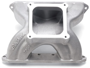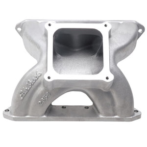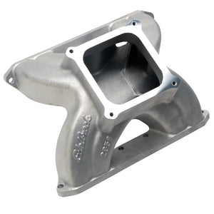 Edelbrock part #2858 Victor Glidden Spider intake manifold is intended for 375 c.i.d and up high output drag race engines. This manifold was developed in conjunction with noted drag racer Billy Glidden and is specifically designed to complement the flow characteristics of fully ported 18-degree and 15-degree cylinder heads. It features a 4500 series carb flange, and the dividers are pulled back to increase plenum size and shorten the runners for improved high rpm performance. The runners are wider at the plenum, producing approximately 3.6 square inches area at the opening. The Edelbrock Victor Glidden Spider is a single-plane, high-rise intake designed for maximum race-winning power at higher engine speeds. Installation Instructions Installation Instructions Installation Instructions