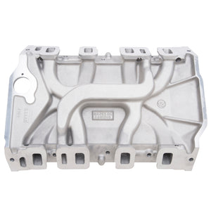 Edelbrock part #21051 Performer 390 intake manifold is designed for street 332-352-360-390-406-410-427-428 c.i.d. Ford V8's with medium- or low-rise cylinder heads. Manifold not equipped with EGR; will not accept stock Motorcraft spread-bore carburetor or fit heavy-duty 361 c.i.d. and 391 c.i.d. Ford truck V8's. This manifold offers a polished finish for a brilliant shine and classic look.