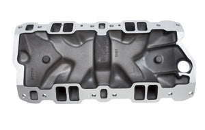 Edelbrock part #71013 Performer RPM intake manifold is designed for 1955-86 262-400 c.i.d. Chevy V8's, for maximum power and a broad torque curve for high- Performance'street/marine engines. Provides power like a single-plane and throttle response like a dual-plane. Has provisions to machine for an oil fill tube. No provisions for exhaust heated or stock-style choke. Accepts late-model water neck, air-conditioning, alternator and H.E.I. Will fit cast iron Chevrolet Bowtie heads but will not fit 1987 and later cast iron heads. Intake manifolds will not fit under stock Corvette hood. This manifold offers a durable black power coated finish for long lasting protection and a distinctive look.