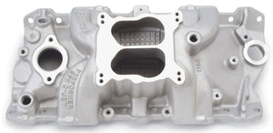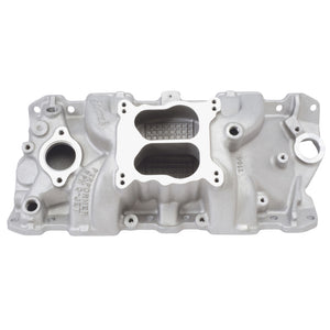 Edelbrock part #7104 Performer RPM Q-Jet intake manifold is designed for 1955-86 262-400 c.i.d. Chevy V8's for spread-bore (Q-Jet) or square-bore carbs. Delivers maximum power and a broad torque curve for high-performance'street. Carb pad will accept square-bore carbs without adapters. Performer RPM Q-Jet has same provisions as #7101. Will not fit under stock Corvette hood. Installation Instructions
