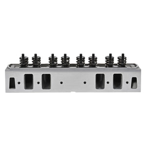 The Edelbrock #61029 Performer RPM Cylinder Head for 1965-76 Oldsmobile 400, 425 and 455 CID V8 engines with hydraulic flat tappet cam is a perfect performance upgrade for big-block Olds-powered street machines and muscle cars. This aluminum cylinder head supersedes the 60519 Olds head and features a redesigned 77cc combustion chamber, larger intake valves and refined bowl blending for improved flow. The #61029 Performer RPM head has improved accommodation for a factory-style mechanical fuel pump with spark plug locations moved slightly towards the exhaust valve for optimized combustion. Intake and exhaust ports have been improved over previous designs, and extra material has been added above the intake port for head work. Performer RPM #61029 heads are cast and machined by Edelbrock in the USA and comes complete with the highest quality intake and exhaust valves and valve springs.