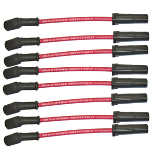 Edelbrock Max-Fire LS Ignition Wire Kits #22717 is a preassembled set of eight spark plug wires for General Motors LS engines. These wires are manufactured using high-quality materials to ensure the best performance possible with a heavy-duty 8.5mm red silicone outer jacket to protect the spiral-wound Kevlar inner core from heat, moisture and chemicals. This direct-fit wire set delivers maximum voltage with extremely high EMI/RFI suppression with 50 ohms per foot of resistance. This kit is ideal for LS builds that demand a high-performance ignition system upgrade with a precision fit and a show-quality appearance. See application chart for engine- or vehicle-specific Max-Fire kits.