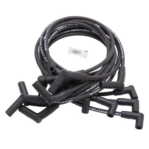 The Edelbrock #22704 Max-Fire Ultra-Spark 500 Performance's Spark plug wires are manufactured from highest quality materials to help deliver maximum voltage ? ensuring the ultimate performance. These wires have an extremely high EMI/RFI suppression along with a very low resistance to help deliver the most spark possible. They feature a heavy duty 8.5mm diameter silicone jacket to protect the Kevlar spiral wound core from heat, moisture and chemicals. Ultra-Spark 500 is a great choice for replacing OEM wires and are value priced. They feature high quality leads that deliver 500 ohms of EMI/RFI noise suppression with low resistance. They are ideal for daily drivers and for budget builds, offering the best combination of value and performance. See application chart for engine or vehicle specific kits.