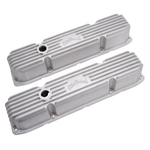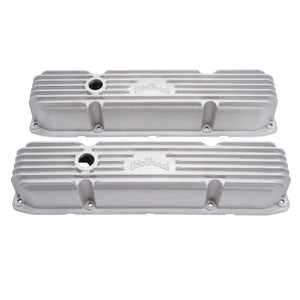 Edelbrock part #41929 Classic Series Valve Covers are designed for Chrysler Big-Block 383/440 applications and have a Satin finish. Edelbrock first made these aluminum valve covers in the late '50s and they're still a classic. Made of heavy-gauge sand-cast aluminum, Overall height is measured from base to top at the highest point. Edelbrock classic valve covers can be machined to accept breathers if desired.