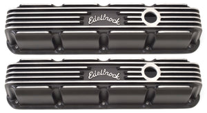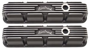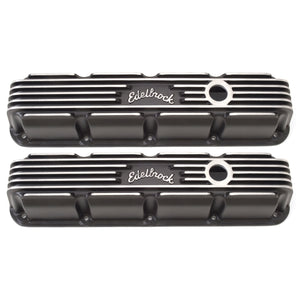 Edelbrock part #41773 Classic Series Valve Covers are designed for Chrysler Small-Block Magnum applications and have a Black finish. Edelbrock first made these aluminum valve covers in the late '50s and they're still a classic. Made of heavy-gauge sand-cast aluminum, Overall height is measured from base to top at the highest point. Edelbrock classic valve covers can be machined to accept breathers if desired. Warranty