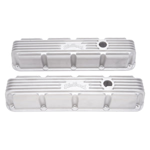Edelbrock part #41779 Classic Series Valve Covers are designed for Chrysler Small-Block Magnum applications and have a Satin finish. Edelbrock first made these aluminum valve covers in the late '50s and they're still a classic. Made of heavy-gauge sand-cast aluminum, Overall height is measured from base to top at the highest point. Edelbrock classic valve covers can be machined to accept breathers if desired. Warranty