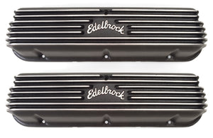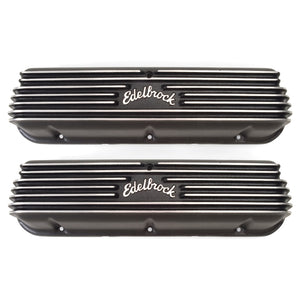 Edelbrock part #41603 Classic Series Valve Covers are designed for Ford 221?351W V8 1962-95 applications and have a Black finish. Edelbrock first made these aluminum valve covers in the late '50s and they're still a classic. Made of heavy-gauge sand-cast aluminum, Overall height is measured from base to top at the highest point. Edelbrock classic valve covers can be machined to accept breathers if desired. Warranty
