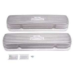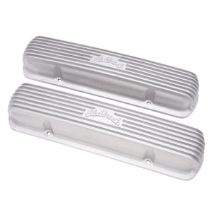 The Edelbrock #41309 Classic Series Valve Covers are designed for Pontiac 301?455 V8 1962-79 applications. Edelbrock first made these aluminum valve covers in the late '50s and they're still a classic. Made of heavy-gauge sand-cast aluminum, Overall height is measured from base to top at the highest point. Edelbrock classic valve covers can be machined to accept breathers if desired.