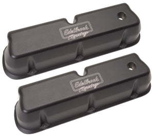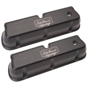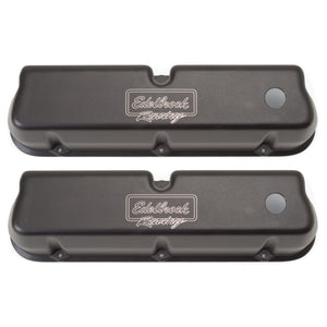 The Edelbrock #41263 Victor Series Valve Covers are designed for Ford 289/302/351W (except Boss) applications. Our Victor Series valve covers have a finely textured black powder coated finish for a pleasing and unique appearance. This is the same finish you'll find on our top-of-the-line Edelbrock/Musi 555 Crate Engine. These valve covers are manufactured from die-cast aluminum and machined with 1-1/4" breather hole. Overall height is measured from base to top at the highest point.