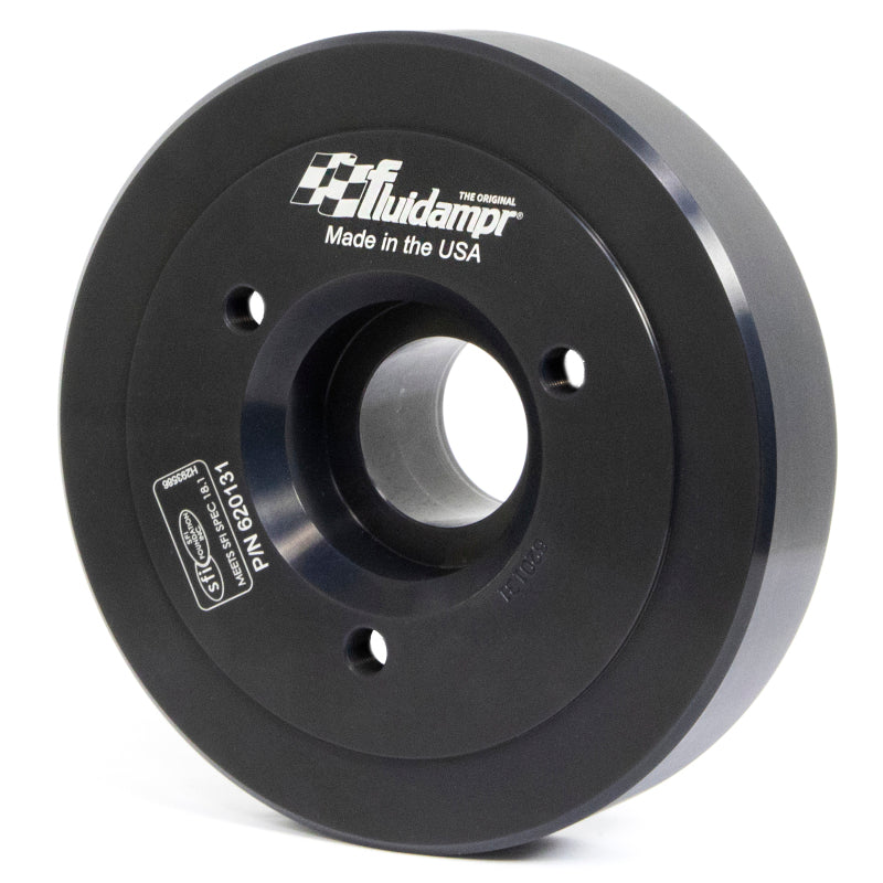 Protect your engine. Modifications can compromise your stock harmonic balancer. Install a Fluidampr performance damper early for best durability. Superior viscous damper design controls harmful torsional vibration across the entire rpm range. Reduce wear on engine components. Reduce risk of crankshaft failure. Improve timing. Unleash lost torque and horsepower. Precision CNC machined and balanced high-grade steel components. Corrosion resistant black zinc finish with engraved markings. No maintenance required. Trusted by leading engine builders worldwide. SFI 18.1 certified. Made in USA. Installation Instructions