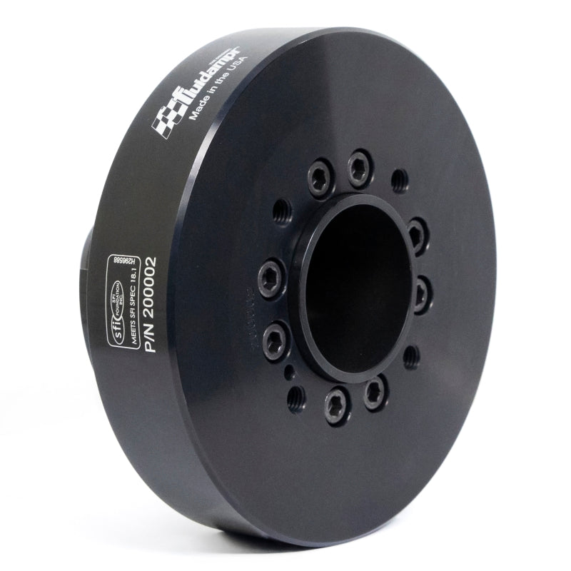 Protect your engine. Modifications can compromise your stock harmonic balancer. Install a Fluidampr performance damper early for best durability. Superior viscous damper design controls harmful torsional vibration across the entire rpm range. Reduce wear on engine components. Reduce risk of crankshaft failure. Improve timing. Unleash lost torque and horsepower. Precision CNC machined and balanced high-grade steel components. Corrosion resistant black zinc finish with engraved timing marks. No maintenance required. Trusted by leading engine builders worldwide. SFI 18.1 certified. Made in USA.