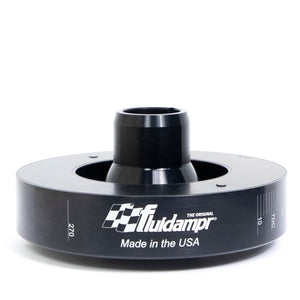 Protect your engine. Modifications can compromise your stock harmonic balancer. Install a Fluidampr performance damper early for best durability. Superior viscous damper design controls harmful torsional vibration across the entire rpm range. Reduce wear on engine components. Reduce risk of crankshaft failure. Improve timing. Unleash lost torque and horsepower. Precision CNC machined and balanced high-grade steel components. Corrosion resistant black zinc finish with engraved timing marks. No maintenance required. Trusted by leading engine builders worldwide. SFI 18.1 certified. Made in USA.