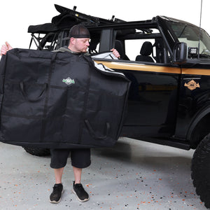 The IAG I-Line Front Door Storage Bags are a must-have if you plan on taking the doors off of your Bronco. Did you know that Ford only sells their door bags if you order them at the same time as your Bronco? Don’t worry, though! These bags are readily available and a great alternative to the expensive OEM bags. Designed to fully cover your doors, these felt-lined bags look great and provide excellent protection for your doors.