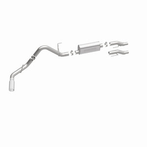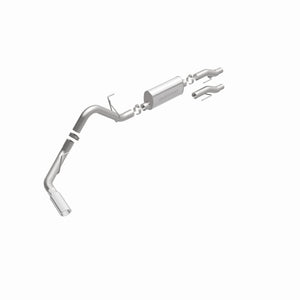 The MagnaFlow 2011-2014 Ford F-150 Street Series Cat-Back Performance Exhaust System 15000 brings out the personality of your 3.7L, 5.0L, 6.2L 2011-2014 Ford F-150 with our signature resonant, powerful engine tone and dyno-proven performance. Thanks to its fast-flowing, mandrel bent 3in. main piping and 1 Straight-Through mufflers ending in a Single Passenger Side Rear exit with 4in. Polished Welded-On Double Wall Angle Cut Rolled Edge tips, this Ford F-150 exhaust kit has the performance chops to match its sporty sound and appearance. Upgrade your ride to the next level with an exhaust that has the pipes to put other Ford F-150's to shame. With this system your vehicle will be producing Moderate exterior and Mild interior sound levels while leaving other cars and trucks feeling envious at every stoplight. Exhaust kit 15000 features a cat-back layout that replaces your ride's stock exhaust components from near the catalytic converter on back. Extensive 3D scanning during development has resulted in a direct-fit design that you can easily install yourself. 15000 is produced using CNC precision robotic manufacturing techniques and is backed by MagnaFlow's 1-year limited finish warranty and limited lifetime construction warranty.