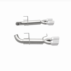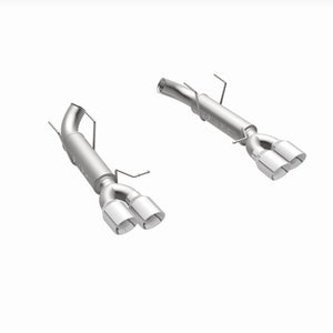 The MagnaFlow 2011-2012 Ford Mustang Competition Series Axle-Back Performance Exhaust System 15077 brings an aggressive, attention-grabbing edge to the deep resonant exhaust note we're so well known for. This exhaust kit is designed to enhance your 5.0L 2011-2012 Ford Mustang with dyno-proven performance made possible thanks to fast-flowing mandrel bent 3in. main piping and 2 Straight-Through mufflers ending in a Quad Split Rear exit with 4in. Polished Welded-On Double Wall Angle Cut Folded Edge tips featuring a sporty finish. The exhaust system's axle-back layout replaces your ride's exhaust system from near the rear axle on back. Exhaust system 15077 is engineered to make your vehicle's engine produce Aggressive exterior and Moderate interior sound levels, befitting its competition-oriented design. 15077's direct-fit design makes installation a breeze thanks to the use of advanced 3D scanning techniques. This performance exhaust system is made of 100% durable and corrosion-resistant stainless steel and produced using CNC precision robotic manufacturing, all backed by MagnaFlow's limited lifetime warranty. Please check to ensure compliance with local noise regulations.
