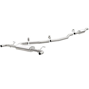 The MagnaFlow Street Series Cat-Back Performance Exhaust System 15230 brings out the personality of your Car with our signature resonant, powerful engine tone and dyno-proven performance. Thanks to its fast-flowing, mandrel bent 2.5in. main piping and 2 Straight-Through mufflers ending in a Dual Split Rear exit, this Car exhaust kit has the performance chops to match its sporty sound and appearance. Upgrade your ride to the next level with an exhaust that has the pipes to put other Car's to shame. With this system your vehicle will be producing Moderate exterior and Mild interior sound levels while leaving other cars and trucks feeling envious at every stoplight. Exhaust kit 15230 features a cat-back layout that replaces your ride's stock exhaust components from near the catalytic converter on back. Extensive 3D scanning during development has resulted in a direct-fit design that you can easily install yourself. 15230 is produced using CNC precision robotic manufacturing techniques and is backed by MagnaFlow's 1-year limited finish warranty and limited lifetime construction warranty.