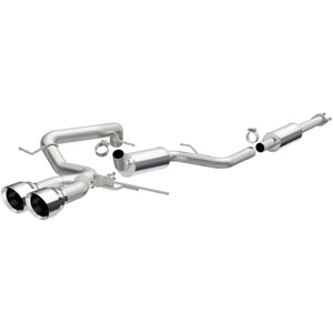 The MagnaFlow 2013-2018 Ford Focus Street Series Cat-Back Performance Exhaust System 15155 brings out the personality of your 2.0L 2013-2018 Ford Focus with our signature resonant, powerful engine tone and dyno-proven performance. Thanks to its fast-flowing, mandrel bent 2.5in. main piping and 2 Straight-Through mufflers ending in a Dual Center Rear exit with 4.5in. Polished Welded-On Double Wall Angle Cut Rolled Edge tips, this Ford Focus exhaust kit has the performance chops to match its sporty sound and appearance. Upgrade your ride to the next level with an exhaust that has the pipes to put other Ford Focus's to shame. With this system your vehicle will be producing Moderate exterior and Mild interior sound levels while leaving other cars and trucks feeling envious at every stoplight. Exhaust kit 15155 features a cat-back layout that replaces your ride's stock exhaust components from near the catalytic converter on back. Extensive 3D scanning during development has resulted in a direct-fit design that you can easily install yourself. 15155 is produced using CNC precision robotic manufacturing techniques and is backed by MagnaFlow's 1-year limited finish warranty and limited lifetime construction warranty.