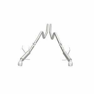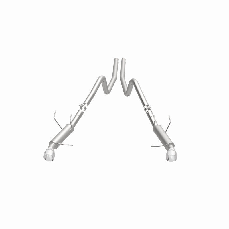 The MagnaFlow 2014 Ford Mustang Competition Series Cat-Back Performance Exhaust System 15245 brings an aggressive, attention-grabbing edge to the deep resonant exhaust note we're so well known for. This exhaust kit is designed to enhance your 3.7L 2014-2014 Ford Mustang with dyno-proven performance made possible thanks to fast-flowing mandrel bent 2.5in. main piping and 2 Straight-Through mufflers ending in a Dual Split Rear exit with 4.5in. Polished Welded-On Double Wall Angle Cut Folded Edge tips featuring a sporty finish. The exhaust system's cat-back layout replaces your ride's exhaust system from near the catalytic converter on back. Exhaust system 15245 is engineered to make your vehicle's engine produce Aggressive exterior and Moderate interior sound levels, befitting its competition-oriented design. 15245's direct-fit design makes installation a breeze thanks to the use of advanced 3D scanning techniques. This performance exhaust system is made of 100% durable and corrosion-resistant stainless steel and produced using CNC precision robotic manufacturing, all backed by MagnaFlow's limited lifetime warranty. Please check to ensure compliance with local noise regulations.