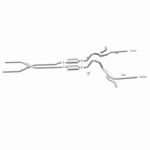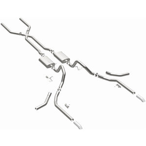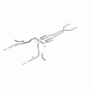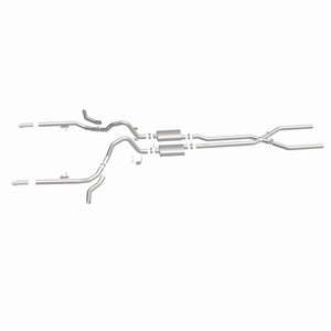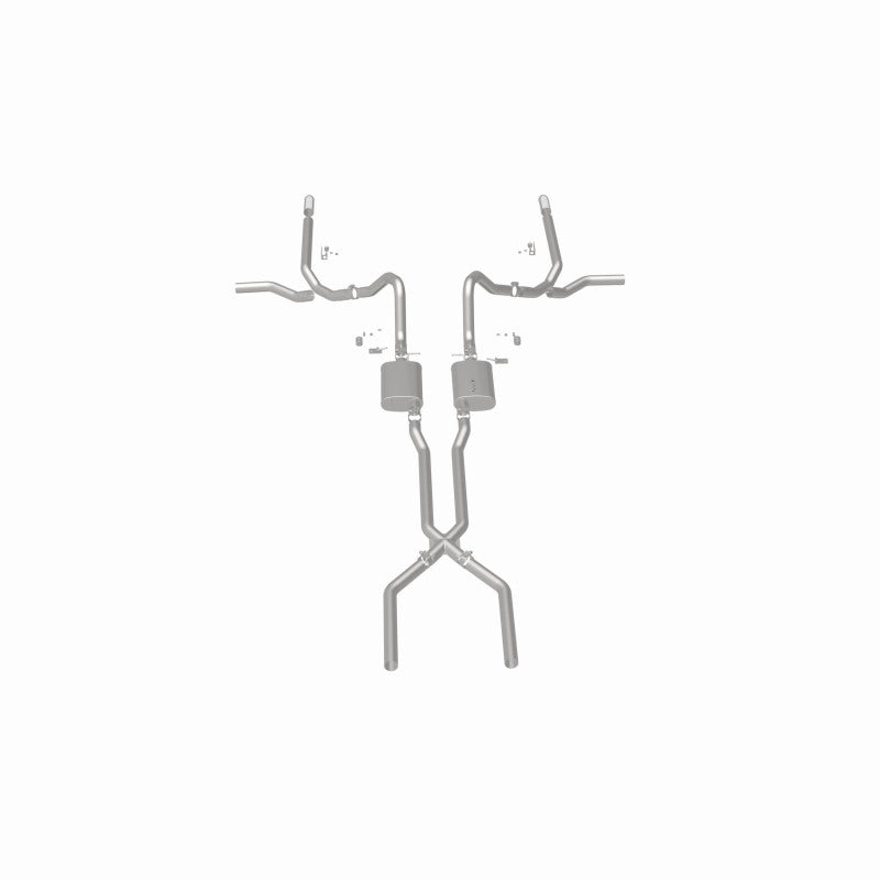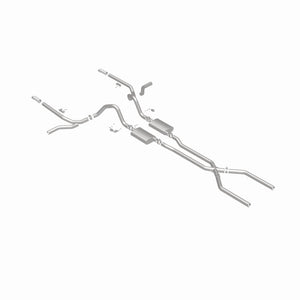 The MagnaFlow 1965-1969 Chevrolet Impala Street Series Crossmember-Back Performance Exhaust System 15165 brings enhanced engine sound and dyno-proven performance to your 3.8L, 4.1L, 4.6L, 5.0L, 5.3L, 5.4L, 5.7L, 6.5L, 6.7L, 7.0L 1965-1969 Chevrolet Impala with a healthy helping of our deep, resonant signature exhaust note at Moderate exterior and Mild interior sound levels. Thanks to its durable, corrosion resistant stainless steel design, this Chevrolet Impala exhaust system will handle whatever tarmac you decide to leave your mark on. This performance exhaust kit features a crossmember-back layout designed to replace your Chevrolet Impala's exhaust system from the crossmember on back. With its fast-flowing, mandrel bent 2.5in. main piping and 2 Straight-Through mufflers ending in a Multiple Exit Options exit with 2.5in. Polished Weld-On Single Wall Turndown Cut Edge tips, your muscle car will be sounding as awesome as it looks. Extensive 3D scanning during development has resulted in a direct-fit design that you can easily install yourself. 15165 is produced using CNC precision robotic manufacturing techniques and is backed by MagnaFlow's limited lifetime construction warranty.