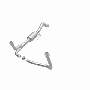 Keep the check engine light off with MagnaFlow HM Grade Federal/EPA Compliant Direct-Fit Catalytic Converter 93217. With features including free-flowing mandrel-bent tubing and highly corrosion resistant stainless steel construction, easily install this spun body converter yourself using the proper tools, no cutting or welding required. MagnaFlow's state-of-the-art metrology department uses the latest 3D scanning systems during research and development, so you can be confident that your new part will fit and function like the original equipment. By replicating the OE spun body design, the single laser fusion weld greatly reduces the possibility of a leak, and our compact, low-mass design also allows for greater thermal efficiency. This direct-fit catalytic converter is designed specifically for the 2000-2003 Dodge Durango and interchanges with OE parts 5210 3373AE and 5210 3374AC, among others. Hardware is included to eliminate the hassle of working with corroded factory parts. This replacement part is designed to meet or exceed Federal emissions requirements set forth by the EPA, complying with legal standards for OBDII Federally registered vehicles with Federal/EPA Emission systems.
