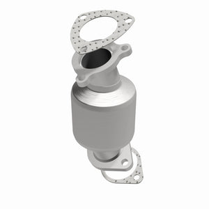 Keep the check engine light off with MagnaFlow HM Grade Federal/EPA Compliant Direct-Fit Catalytic Converter 93187. With features including free-flowing mandrel-bent tubing and highly corrosion resistant stainless steel construction, easily install this spun body converter yourself using the proper tools, no cutting or welding required. MagnaFlow's state-of-the-art metrology department uses the latest 3D scanning systems during research and development, so you can be confident that your new part will fit and function like the original equipment. By replicating the OE spun body design, the single laser fusion weld greatly reduces the possibility of a leak, and our compact, low-mass design also allows for greater thermal efficiency. Designed to fit the 2000-2005 Mitsubishi Eclipse, 2001-2005 Dodge Stratus, and more, this direct-fit catalytic converter also interchanges with OE parts MN135543 and MR464478, among others. Avoid potential exhaust leaks by using the included gaskets to get a proper seal. This replacement part is designed to meet or exceed Federal emissions requirements set forth by the EPA, complying with legal standards for OBDII Federally registered vehicles with Federal/EPA Emission systems.