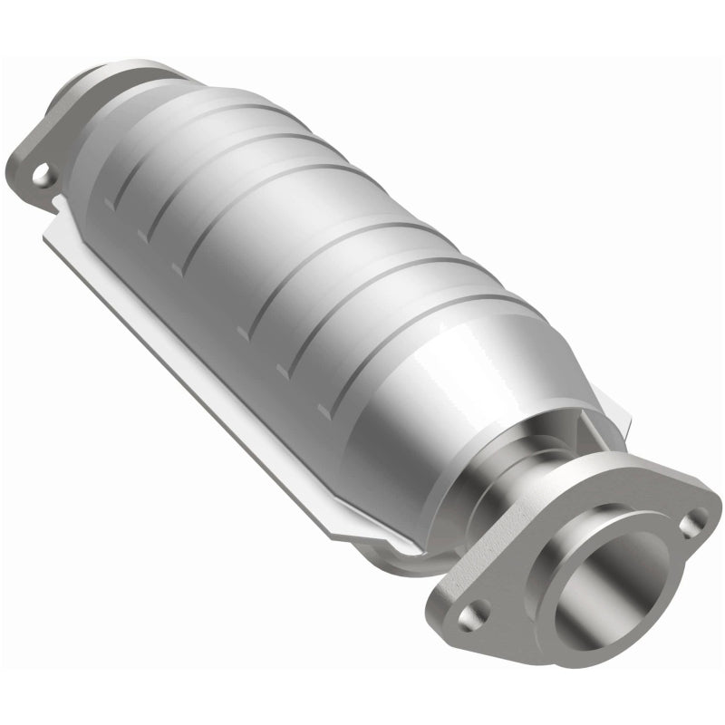 Keep the check engine light off with MagnaFlow HM Grade Federal/EPA Compliant Direct-Fit Catalytic Converter 23619. With features including free-flowing mandrel-bent tubing and highly corrosion resistant stainless steel construction, easily install this spun body converter yourself using the proper tools, no cutting or welding required. MagnaFlow's state-of-the-art metrology department uses the latest 3D scanning systems during research and development, so you can be confident that your new part will fit and function like the original equipment. By replicating the OE spun body design, the single laser fusion weld greatly reduces the possibility of a leak, and our compact, low-mass design also allows for greater thermal efficiency. This direct-fit catalytic converter is designed specifically for the 2001-2002 Mitsubishi Mirage. Avoid potential exhaust leaks by using the included gaskets to get a proper seal. This replacement part is designed to meet or exceed Federal emissions requirements set forth by the EPA, complying with legal standards for OBDII Federally registered vehicles with Federal/EPA Emission systems.