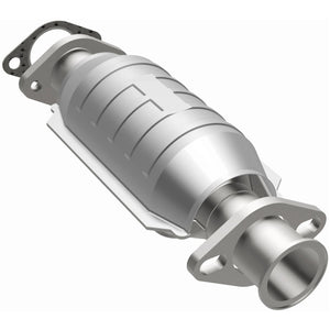 Keep the check engine light off with MagnaFlow Standard Grade Federal/EPA Compliant Direct-Fit Catalytic Converter 23240. With features including free-flowing mandrel-bent tubing and highly corrosion resistant stainless steel construction, easily install this spun body converter yourself using the proper tools, no cutting or welding required. MagnaFlow's state-of-the-art metrology department uses the latest 3D scanning systems during research and development, so you can be confident that your new part will fit and function like the original equipment. By replicating the OE spun body design, the single laser fusion weld greatly reduces the possibility of a leak, and our compact, low-mass design also allows for greater thermal efficiency. This direct-fit catalytic converter is designed to fit the 1990-1994 Hyundai Excel, 1987-1988 Dodge Colt, and additional vehicles. The included gaskets & hardware reduce the possibility of a leaking seal while avoiding the need to reuse corroded factory parts for installation. This replacement part is designed to meet or exceed Federal emissions requirements set forth by the EPA, complying with legal standards for pre-OBDII Federally registered vehicles.