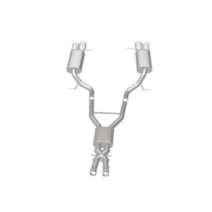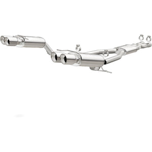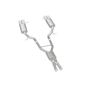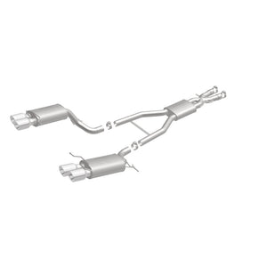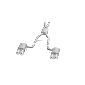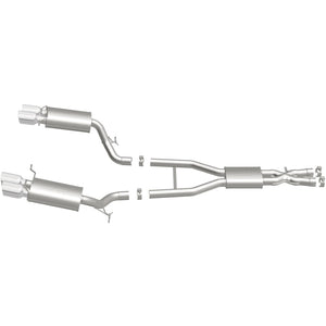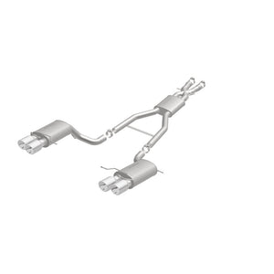 The MagnaFlow 2006-2010 BMW M5 Touring Series Cat-Back Performance Exhaust System 16859 is the perfect partner for your 5.0L 2006-2010 BMW M5 to take on a grand tour or a weekend cruise thanks to the powerful, resonant exhaust note and dyno-proven performance it brings to the table. This durable, corrosion resistant stainless steel exhaust kit is engineered to conquer the miles with ease while enhancing your driving experience with Moderate exterior and Mild interior sound levels generated through its fast-flowing, mandrel bent 2.5in. main piping and 3 Straight-Through muffler that terminate in a Quad Split Rear exit with 4in. Polished Welded-On Double Wall Angle Cut Rolled Edge tips. 16859 features a cat-back layout design to replace your import's stock exhaust components from the catalytic converter on back. This BMW M5 exhaust system is compatible with 2006-2010 engines. The use of extensive 3D scans made during the development process has resulted in an easy-to-install, direct-fit design that fits your BMW M5 like a glove. 16859 is produced using CNC precision robotic manufacturing techniques and is backed by MagnaFlow's limited lifetime construction warranty.