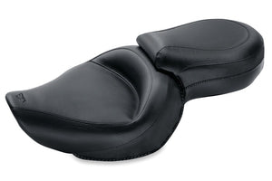 The one-piece Wide Touring seat places the rider in a similar position compared to stock and features a 14.5" wide driver seat that's deeply pocketed, provides ample back support and keeps the rider planted in a comfortable cruising position. The 10.5" wide passenger seat also extends forward over the driver's seat to give additional back support.