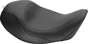 Take control of your ride! Mustang's Wide Tripper forward Solo moves the driver 1.5" forward to reduce the reach to the handlebars and foot controls. The 13" wide driver seat supports riders at the correct seating angle with extra width in the hip area for long-distance comfort. Available in black or distressed brown, in Original or Diamond Stitched styles, and with or without a built-in driver backrest that's fully adjustable and easily removable without tools.