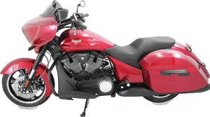 A clean and comfortable one-piece Wide Touring platform with a deeply pocketed 15.5" wide driver seats that sits you at the ideal cruising angle approximately 1/4" lower than stock. The 12" wide passenger seat utilizes unique internal steel support wings for support across its entire width.