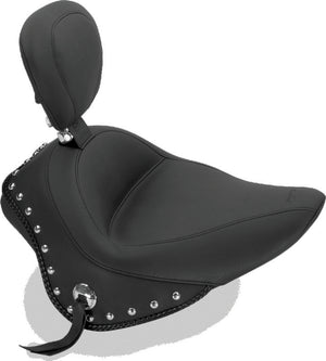 Available with or without a built-in fully adjustable and easily removable driver backrest, Mustang's Wide Touring solos feature a deeply pocketed 16" wide driver seat that provides ample support. Places the rider at a similar position to stock with extra width in the hip area for all-day comfort. Available matching 8" or 11.5" wide passenger seats offer comfortable 2-up riding. Recessed Passenger seats are designed for use with the built-in driver backrest.