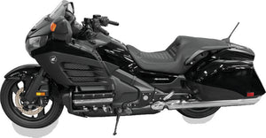 Compared to the original seat, Mustang's all new Touring Fastback is better by design. The front seat sits the driver about 1" lower than stock for maximum control of the bike while stopped. The driver is also positioned further back "into the bike" with a full 8" rise for all-day back support. The passenger seat is contoured to take pressure off one's thighs. Designed to work with or without the stock passenger backrest.