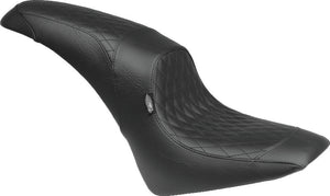 The Dirty Bird teamed up with Mustang to develop the new John Shope Signature Series designed exclusively for Indian Motorcycle. The Signature Series Tripper for Scouts has an 8.5" wide seat for the driver and a slim 5" wide rear to provide sufficient padding for use as a passenger seat. Features a double-stitched, high-quality expanded vinyl cover with perforated diamond-stitched center panel, and a low profile to rest the driver in an aggressive yet comfortable riding position.