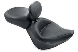 Mustang's Wide Touring Solo provides a full 17.5" width for the driver with deep bucket styling for maximum comfort. Available with or without a fully adjustable and easily removable driver backrest. Pair the solo with a matching passenger seat for comfortable 2-up riding. Recessed Passenger seats are designed for use with the built-in driver backrest. for seats without a built-in driver backrest, the 14" wide passenger seat extends forward for increased driver back support.