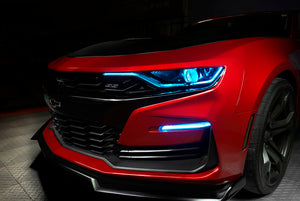 Upgrade your lights to any color by simply replacing the factory DRL circuit boards with the ORACLE Lighting ColorSHIFT(tm) circuit boards. Featuring our new high-performance RGBW+A chips, this new kit allows you to utilize the existing DRL feature on your Camaro LED Headlights and easily convert it to Color-Changing DRLs. Our new RGBW+A SWITCHBACK line-up features Amber LED chips that can be utilized as a Turn Signal by tapping into the + turn signal wire on your existing headlight harness. The boards also feature an extra "White LED" which allows for truer white tones, a crisp white DRL color option and the ability to instantly switch over for 100% legal road driving. These DRL boards can make hundreds of different colors, dozens of patterns, control the brightness, and even the speed of the functions as well! Will only fit SS/RS Camaro models. Professional installation is recommended with our premium silicone sealant. White and amber are street-legal colors. Other colors not intended for on-road use, please verify your state and local driving laws.