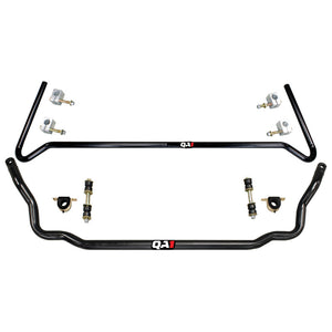 QA1 Front Sway Bars are manufactured from lightweight hollow-core (4130) Chromoly steel for maximum strength and durability. The CNC forming ensured precision fitment for a true bolt-on installation. A gloss black powder coated finish is applied for lasting durability and corrosion resistance. They also include greasable graphite polyurethane bushings and high quality plated hardware. QA1 Rear Sway Bars are manufactured from heavy duty solid-core(1045) cold formed steel for maximum strength. Precision CNC forming ensures proper fitment for a true bolt-on installation. A gloss black powder coated finish is applied for lasting durability and corrosion resistance. They include greaseable graphite polyurethane bushings, U-bolts and high quality plated hardware.