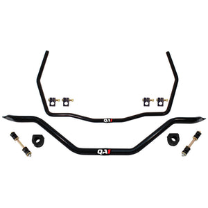 QA1's Mustang Front Sway Bars are manufactured from lightweight hollow-core (4130) Chromoly steel for maximum strength and durability. The CNC forming ensured precision fitment for a true bolt-on installation. They feature adjustable end links for fine tuning of the roll stiffness to your personal preference. A gloss black powder coated finish is applied for lasting durability and corrosion resistance. They also include greasable graphite polyurethane bushings and high quality plated hardware. QA1's Mustang Rear Sway Bars are manufactured from heavy duty solid-core(1045) cold formed steel for maximum strength. Precision CNC forming ensures proper fitment for a true bolt-on installation. These sway bars feature the same adjustable end links and gloss black powder coated finish. They include greaseable graphite polyurethane bushings, U-bolts and high quality plated hardware.